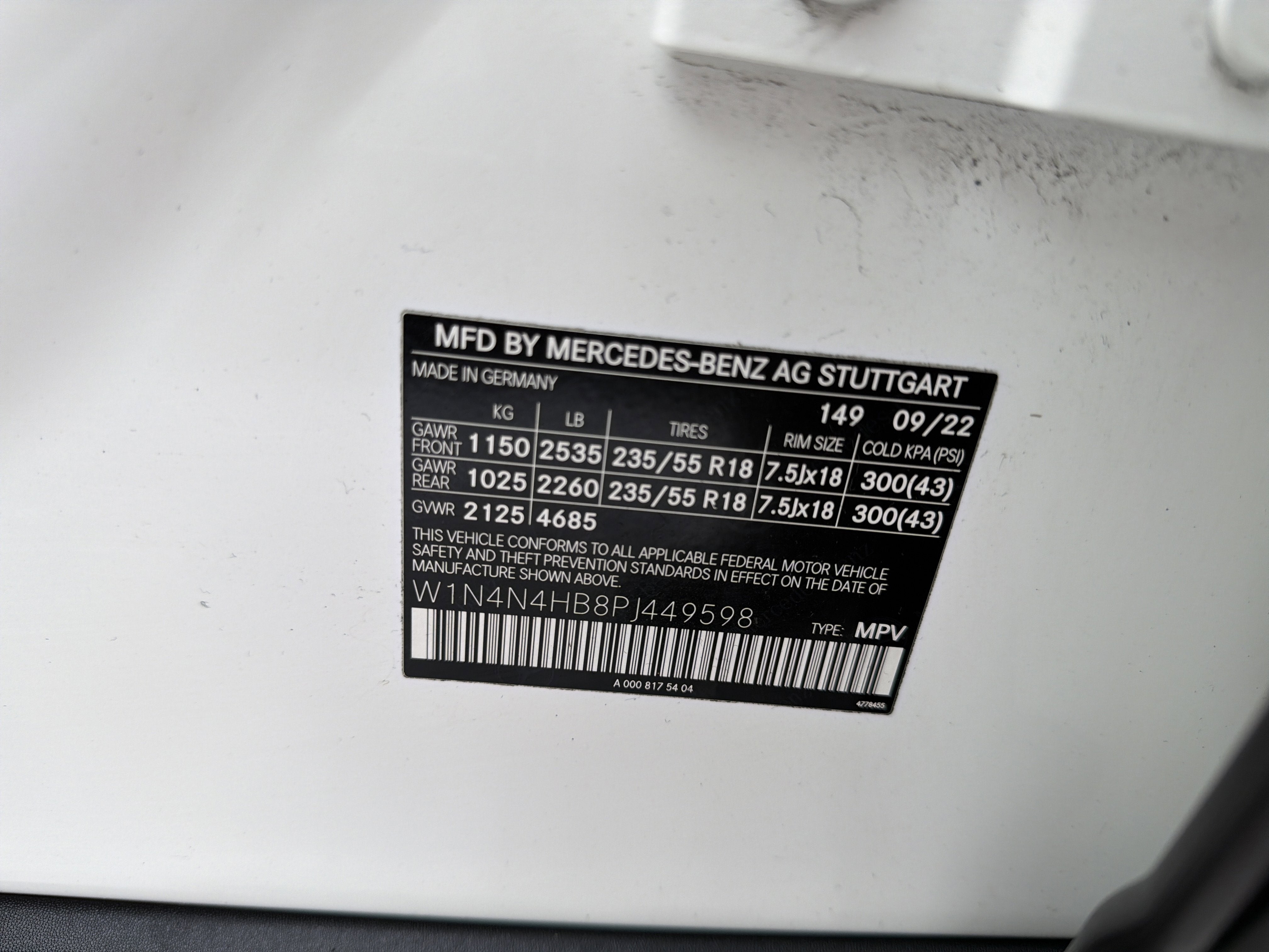 - Front Tire Size: P235/55HR18