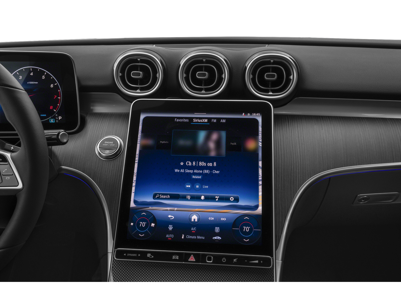 - Radio: MBUX Multimedia System -inc: 11.9" center touchscreen display, Burmester surround sound system, 3 USB-C ports, wireless Apple Carplay and Android Auto, HD radio and Bluetooth® technology (for handsfree phone use/audio streaming)